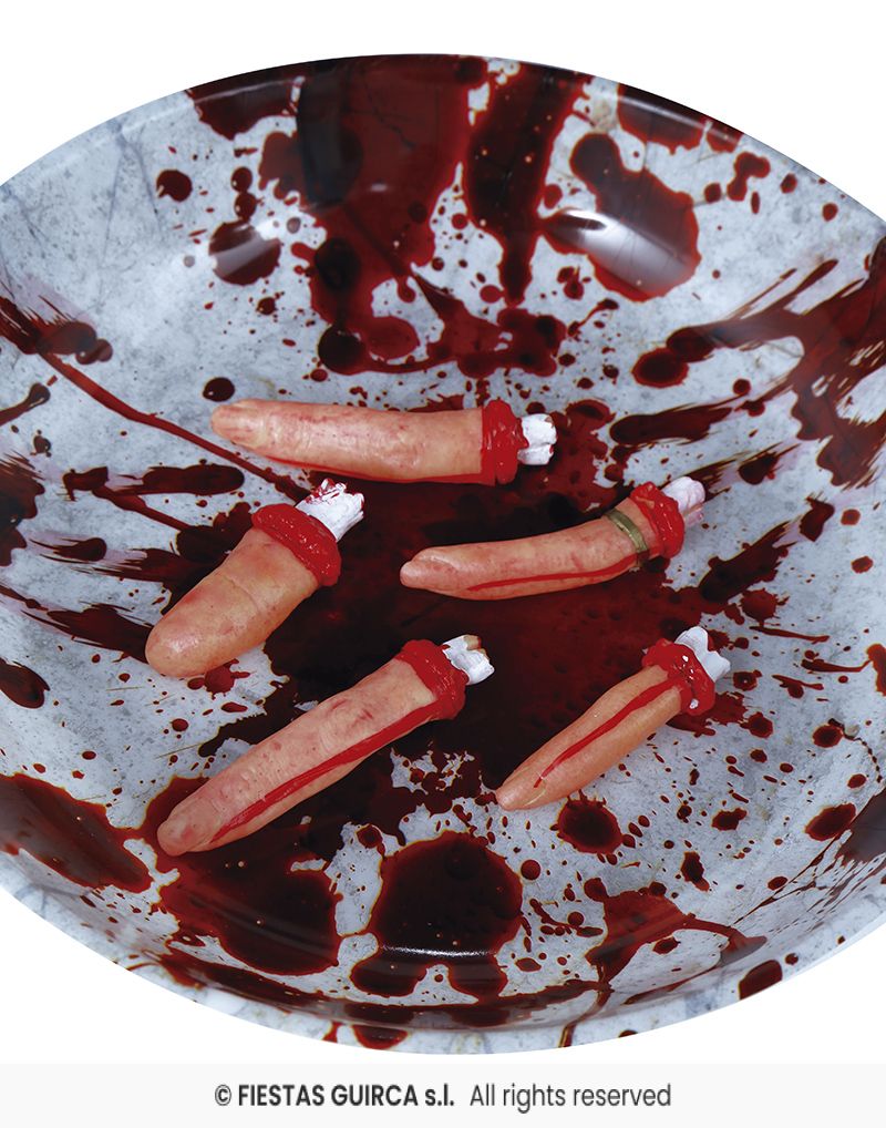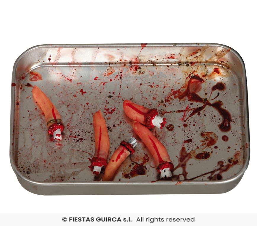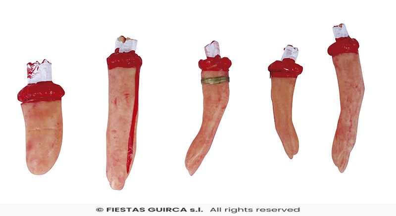 Koristele Halloween juhlasi näillä kauhistuttavilla amputoiduilla verisillä sormilla. Pakkauksessa on 5 kpl sormia.
