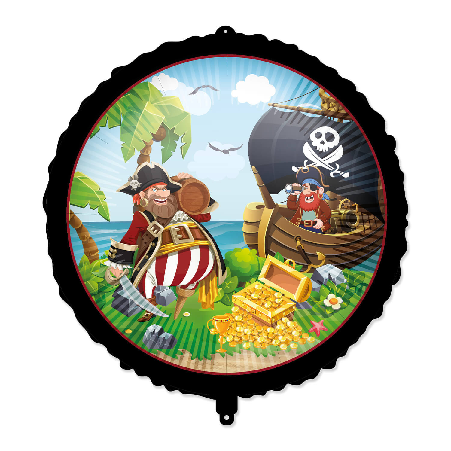 Merirosvojuhliisi foliopallo, jossa merirosvot seikkailevat. Foliopallon koko täyttämättömänä on 45 cm.