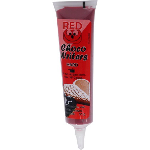 Tee herkullisen näyttäviä koristeita ja kirjoituksia tällä kätevällä punaisella Choco Writer -suklaakoristeaineella! Sulata tuubi lämpimässä vedessä (enintään 39°C) noin 10 minuutin ajan ja pursota sitten suoraan kakkujen, muffinien, keksien tai muiden leivonnaisten pinnalle.