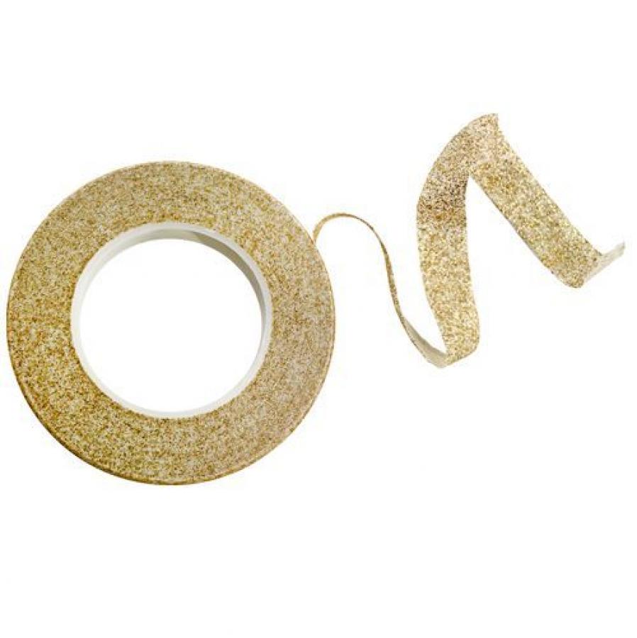 Valkoinen kukkateippi, jossa kultaglitteriä. Rullassa n. 18,3 metriä. Leveys 1,2cm