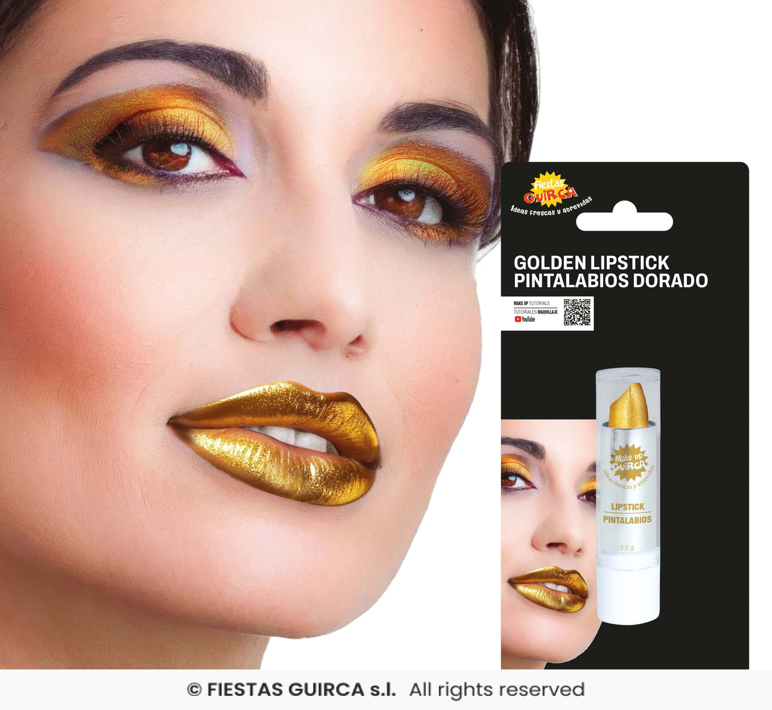 Kullanvärinen metallinhohtoinen huulipuna niin Uuden vuoden juhliin, pikkujouluihin, Halloween juhliin kuin muihinkin juhliin.