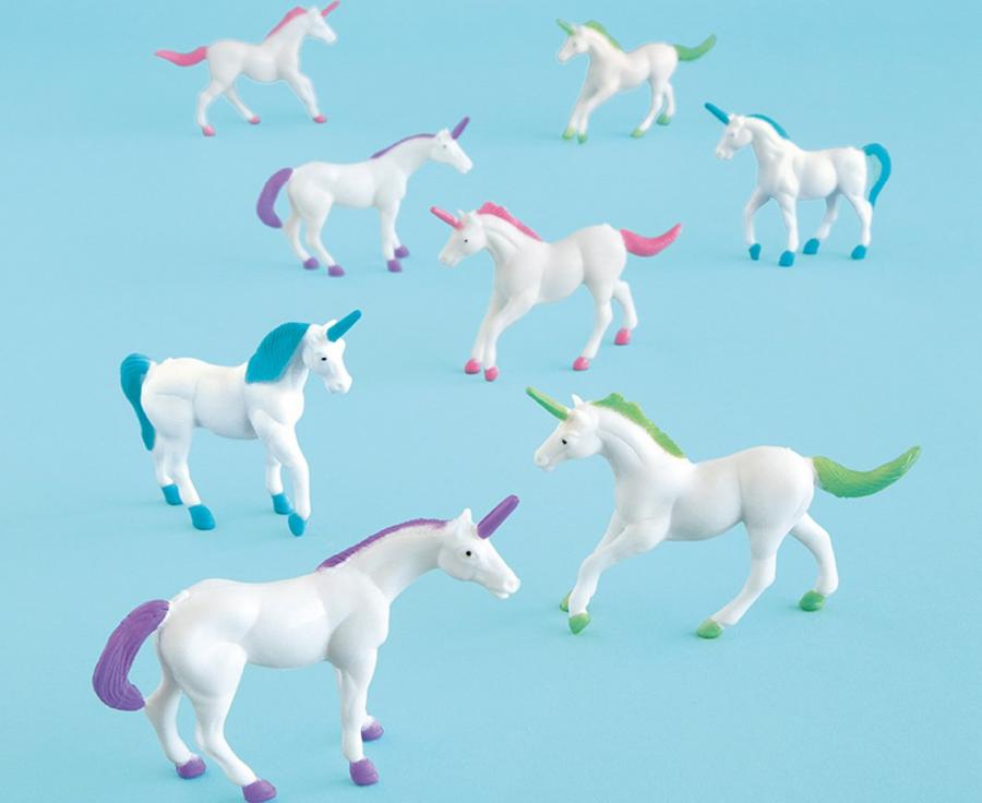 Lahjaksi, kaverilahjaksi, pinjatan täytteeksi, leikkeihin tms. 8 kpl muovisia yksisarvis-hahmoja. Pakkauksessa on 4 eri väristä yksisarvista.