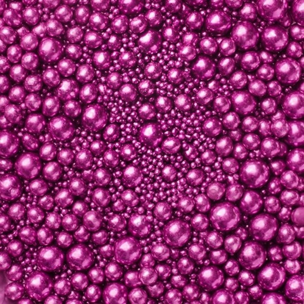 Tee luomuksistasi näyttäviä näillä metallinhohtoisilla fuksianvärisillä sokerihelmillä! Täydellinen rohkeaan, juhlavaan ilmeeseen kirkkaan pinkeillä yksityiskohdilla kakkuihin, kuppikakkuihin ja kekseihin. Mutta voit myös tehdä jälkiruoista visuaalisesti kimaltelevia ja vastustamattomia näiden sokerihelmien avulla!