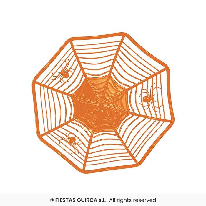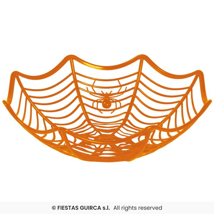 Tarjoile Halloween herkkusi tai Spiderman juhlien herkut tästä oranssinvärisestä muovisesta hämähäkinseitti-tarjoiluastiasta. Voit laittaa myös Karkki vai kepponen -kierteleville lapsille ulos herkkuja tähän kulhoon.