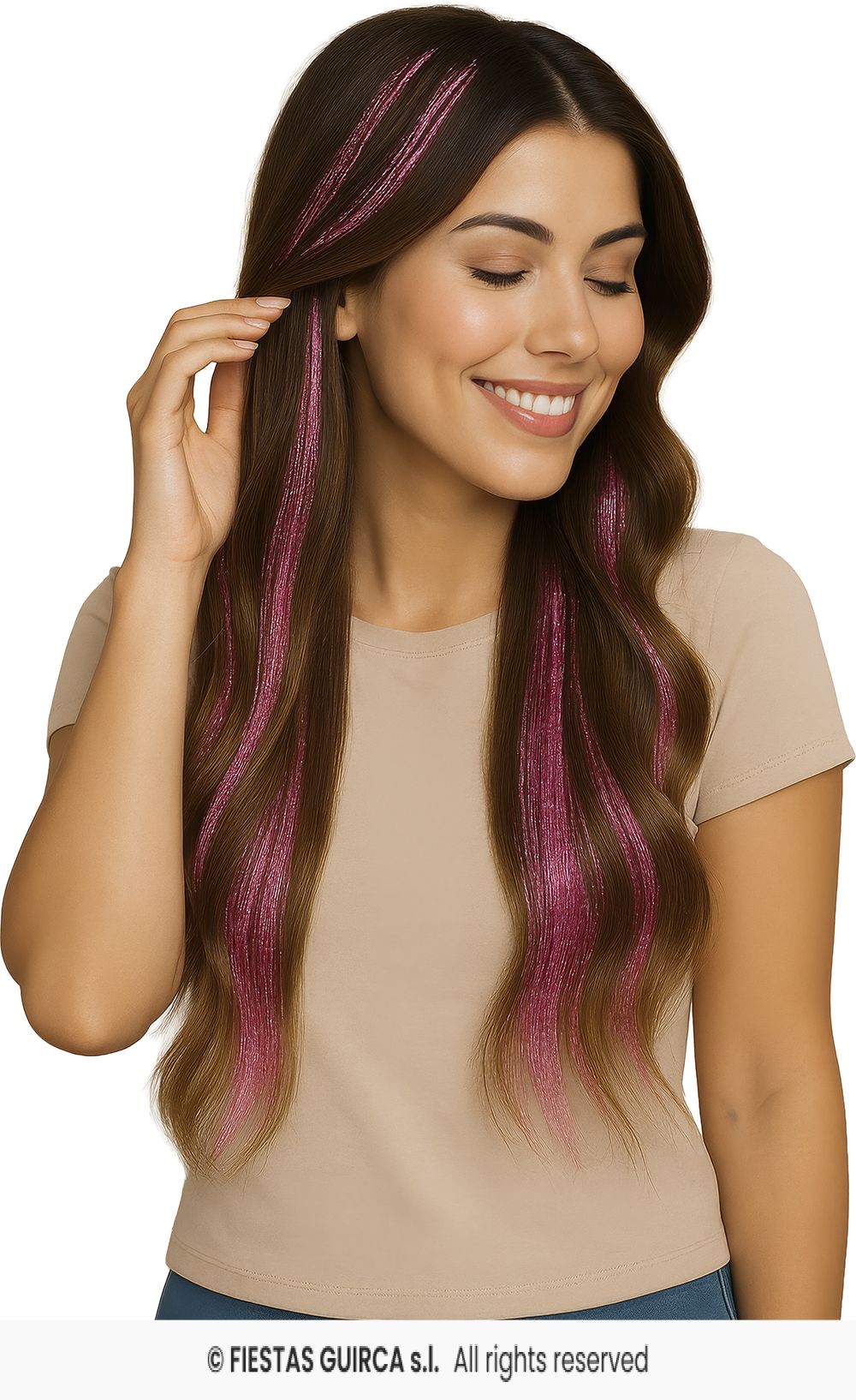 Koristele hiuksesi näillä pinkinvärisillä hiuslisäkkeillä. Pakkauksessa on 3 kpl lisäkkeitä, joiden pituus on 50 cm.