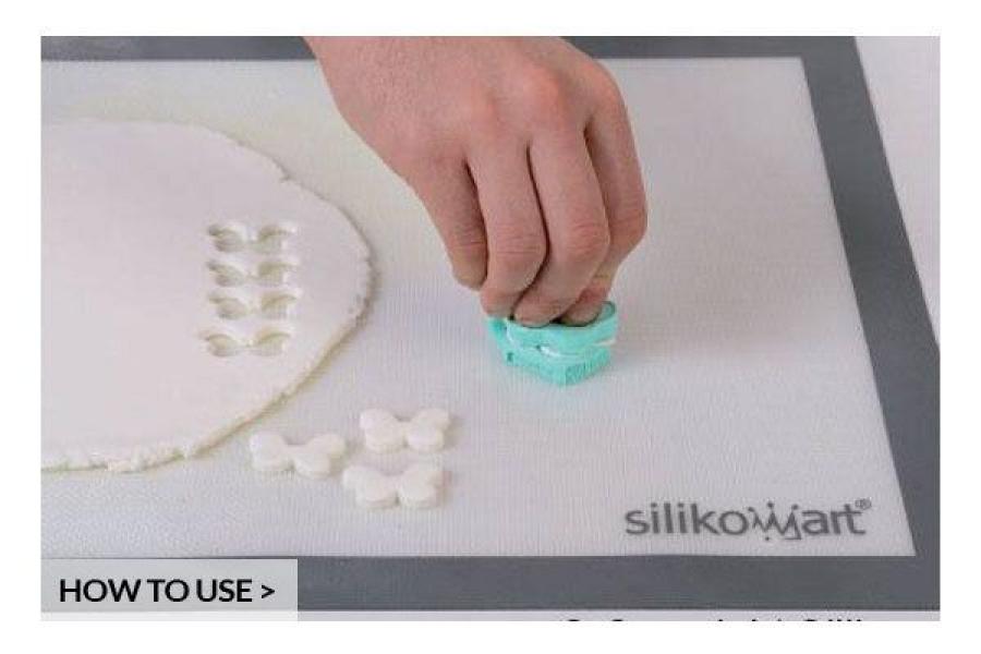 Paina ensin metallimuotilla kuvio esim. sokerimassasta, marsipaanista jne. ja laita sitten kuvio silikonimuotin sisään, jolloin siihen painautuu petunian muoto. Koristele lopuksi tomuväreillä, maaleilla jne.