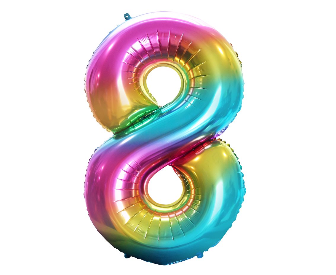 Näyttävä sateenkaarenvärinen numero foliopallo