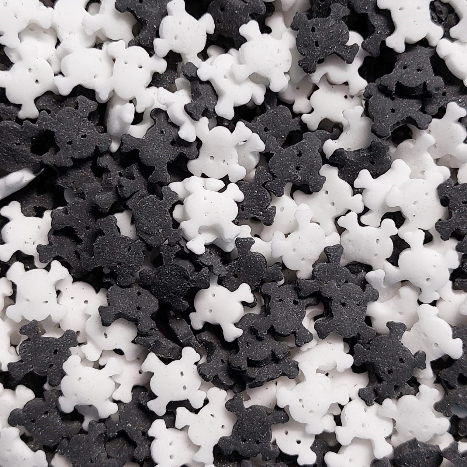 Tee niin merirosvojuhliin kuin Halloween leivonnaisiin pelottavaa efektiä näillä valkoisilla ja mustilla syötävillä koristeilla.