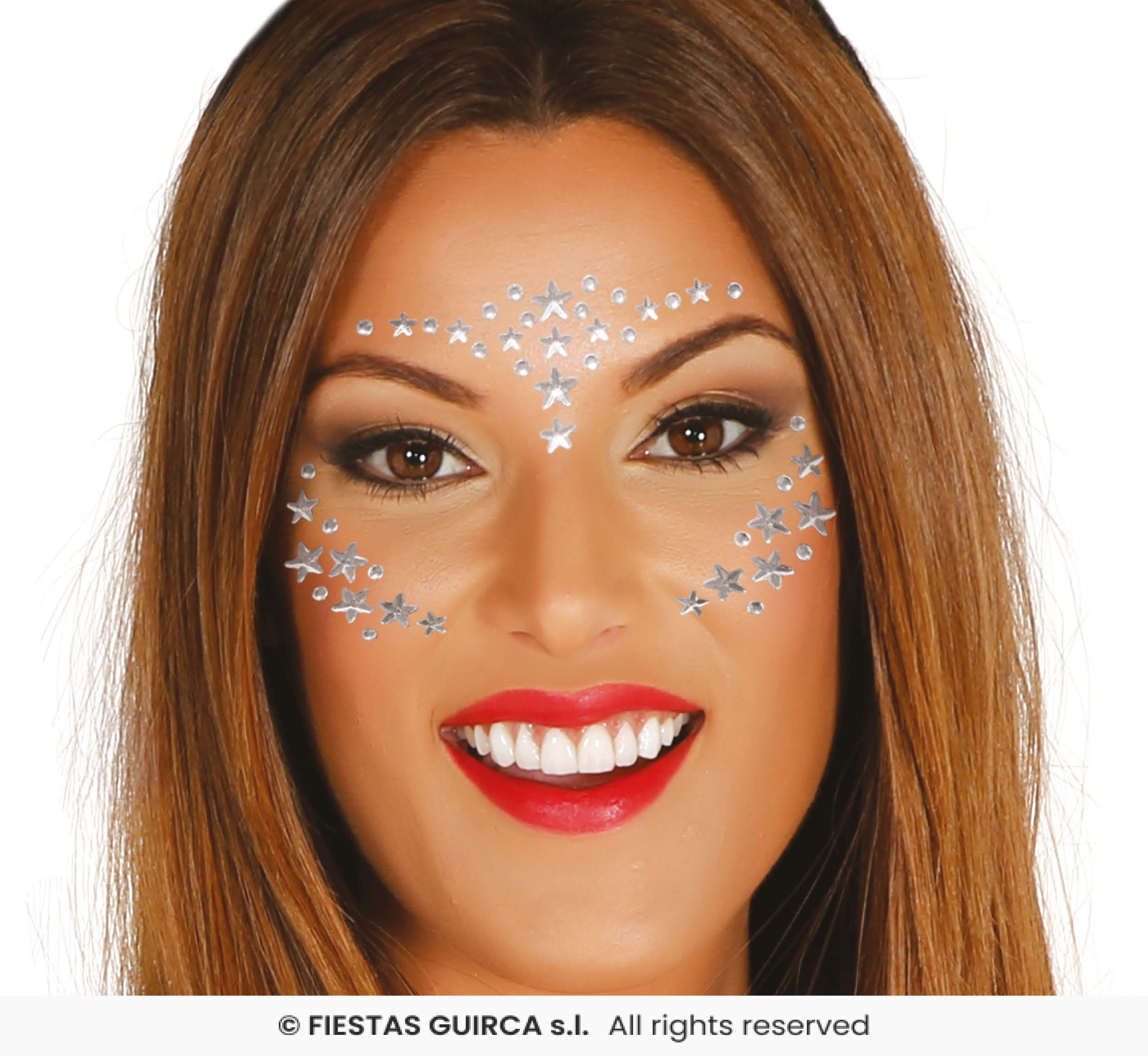 Upeat nyttävät ihotimantit, joilla koristele kasvosi niin juhliin kuin festareille! ihotimantit ovat hopeanvärisiä timantteja. Pakkauksessa on niin tähtitimantteja, sydämiä kuin palloja. Voit käyttää timantteja yksinään tai sommitella niistä kuvan mukaisen kuvion.