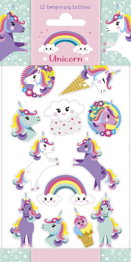 Tuo taianomainen tunnelma lasten juhliin näillä suloisilla yksisarvis-aiheisilla väliaikaisilla tatuoinneilla! Pakkaus sisältää värikkäitä ja iloisia kuvia, kuten yksisarvisia, sateenkaaria ja tähtiä, jotka ihastuttavat jokaista pientä juhlijaa.